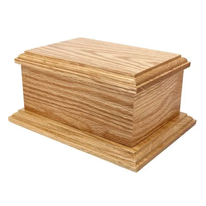 A gorgeous solid oak urn for your pet’s ashes.