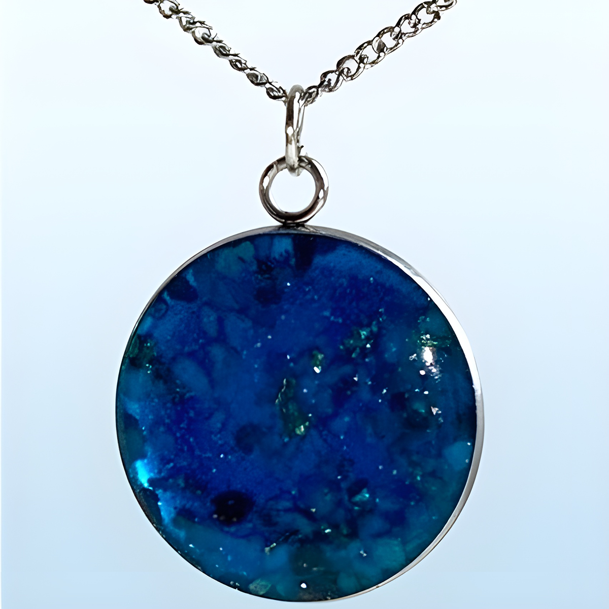 A stainless steel pendant infused with your pet’s ashes, preserved in resin for a lasting memorial. Available in blue, green, pink, purple, black, amber, or clear, each pendant can be engraved with your pet’s name on the reverse for a personal touch.